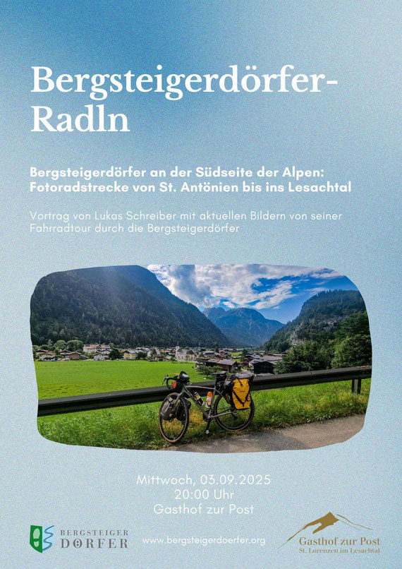 29 Bergsteigerdörfer und eine Radtour. Lukas (JOey) Schreiber radelt vom salzburgischen Bergsteigerdorf Hüttschlag über die Bergsteigerdörfer in Oberbayern und Tirol bis ins Große Walsertal. Über die Bergsteigerdörfer in Graubünden und Südtirol gelangt er wieder nach Österreich, wo er die Bergsteigerdörfer in Osttirol und Kärnten besucht. Der abschließende Abschnitt führt ihn über den Lungau, die Steiermark und Niederösterreich in die oberösterreichischen Bergsteigerdörfer Grünau und Steinbach am Attersee.