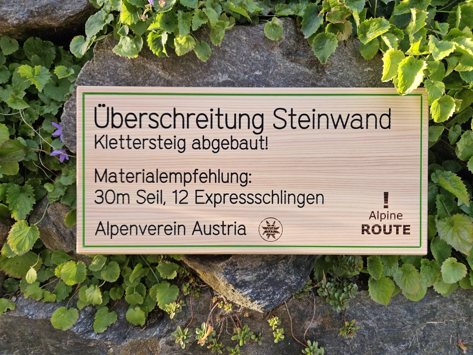 Der (ehemalige) Klettersteig über die Steinwand wurde ZUR GÄNZE abgebaut, es befinden sich keine Stahlseile mehr am Weg. Die Überschreitung wird als ALPINE ROUTE weitergeführt.